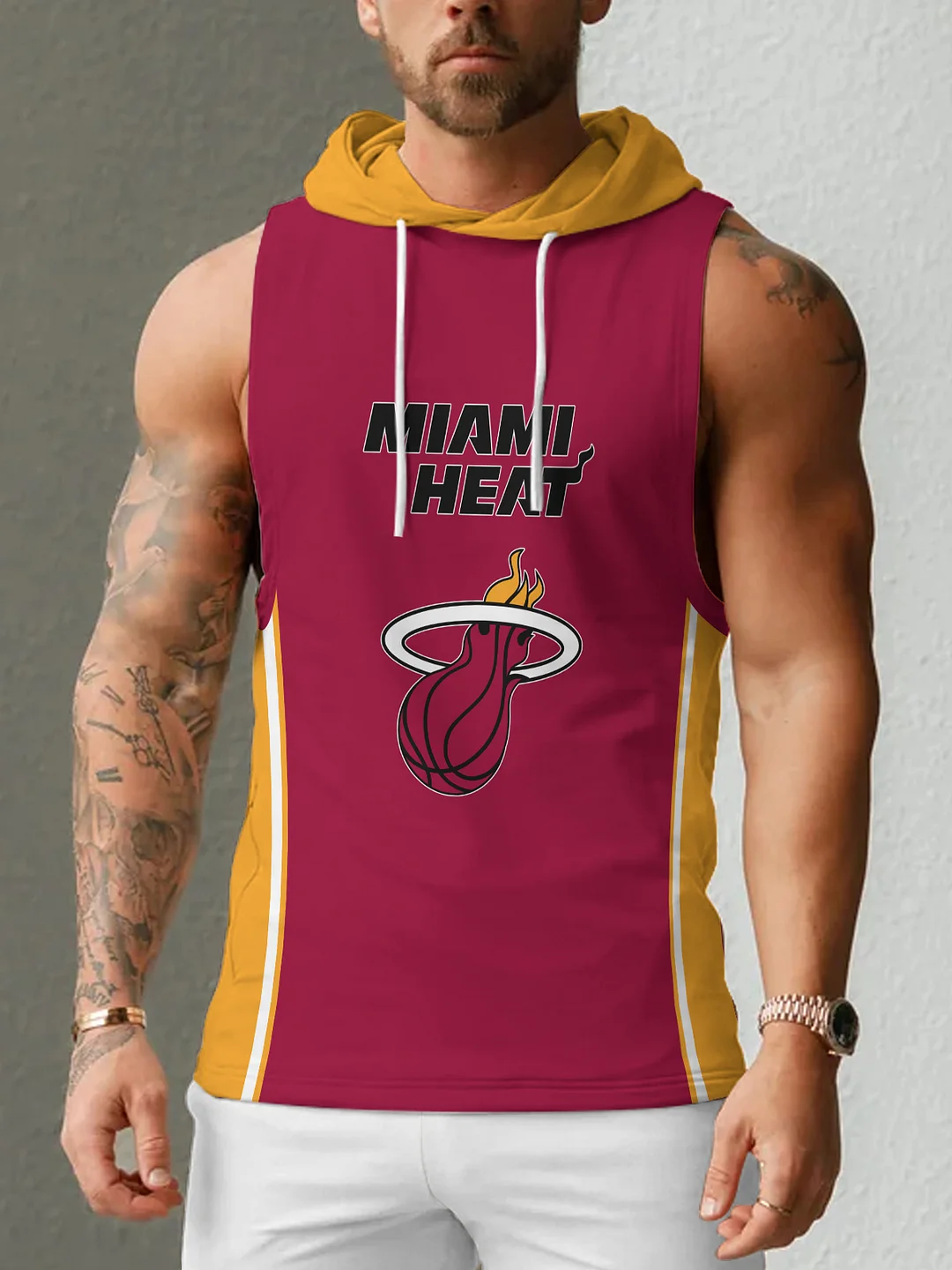 Miami Heat Men's Casual Comfy Sleeveless Hooded Tank Top